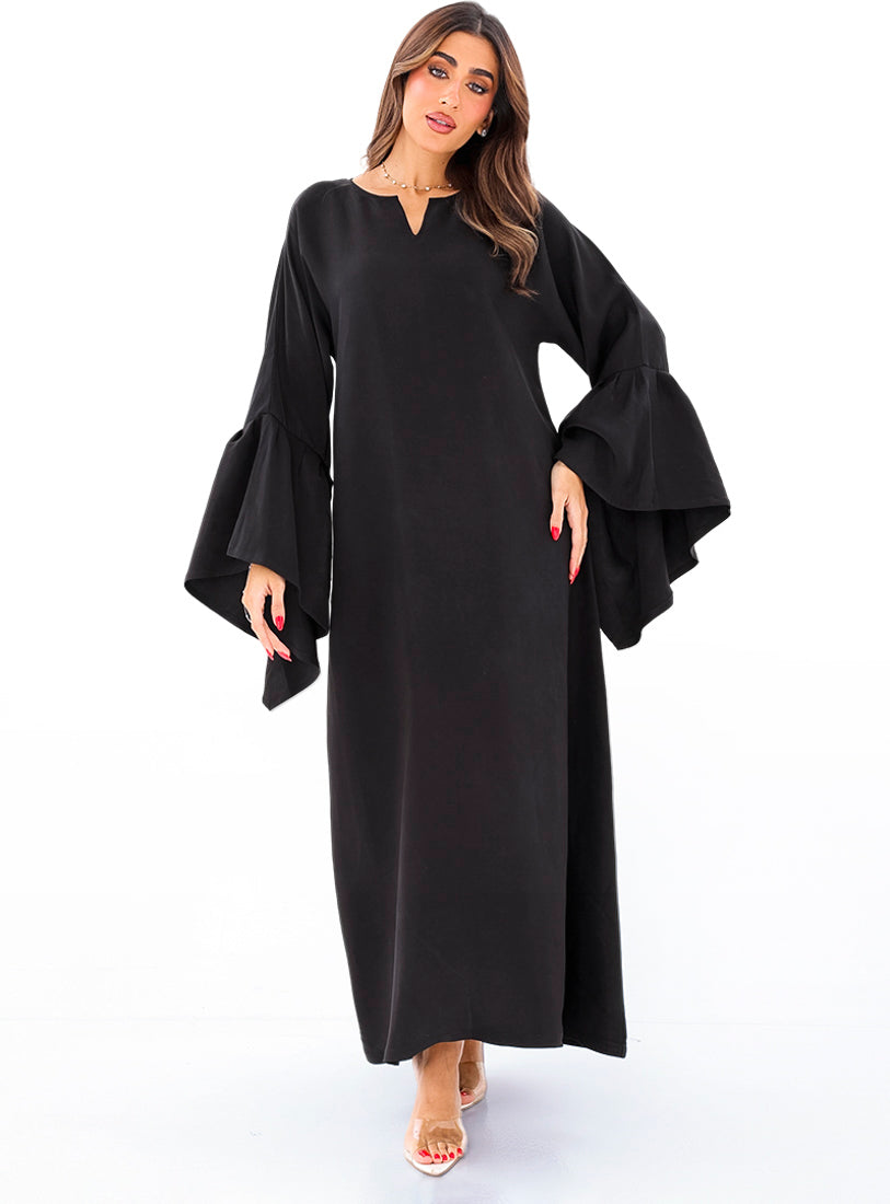 Cut in matte crepe silk, this plain chocolate abaya is your understated go-to. It moves...