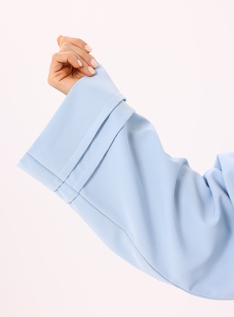 Crafted in Crepe Mix, Cloud features soft pleats on the left side and at the sleeve hems, creating a delicate flow with subtle detail.