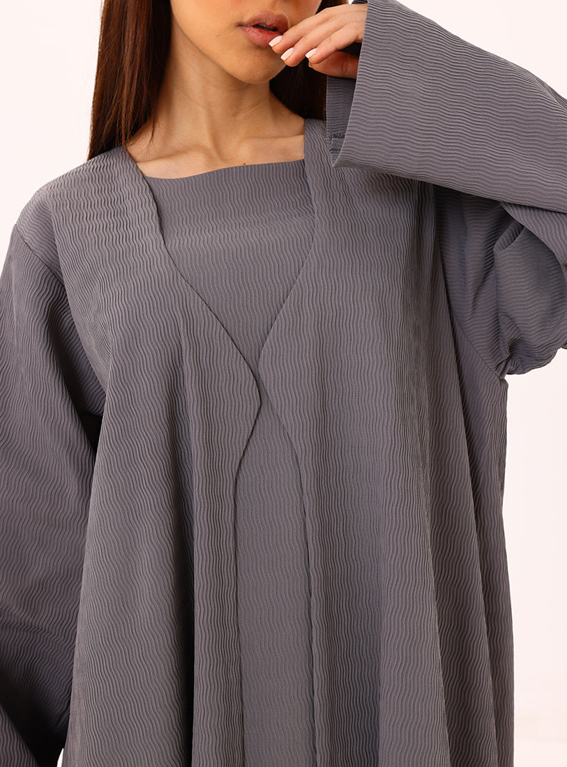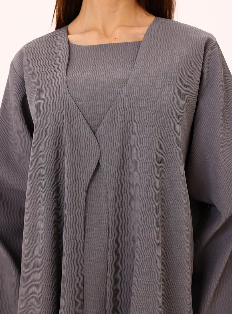 Crafted in fluid Groove Crepe, Flow features a soft wave design at the front with a slight straight cut, creating an effortless and graceful silhouette.