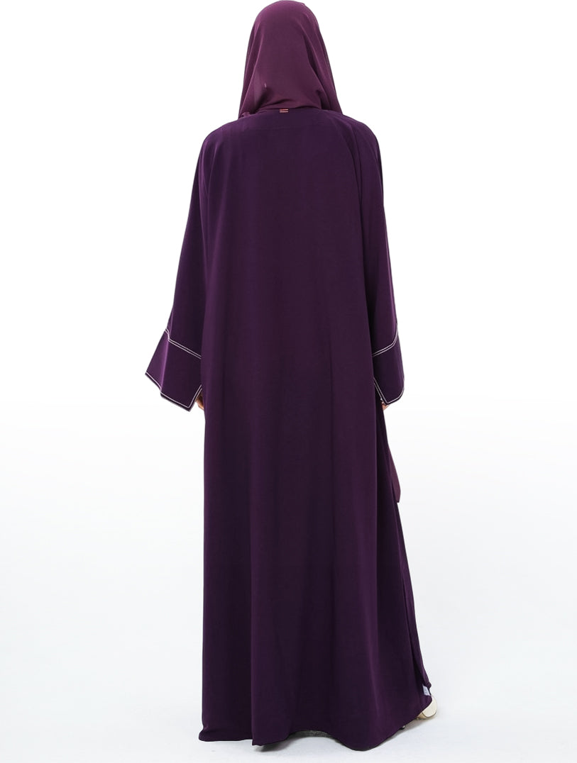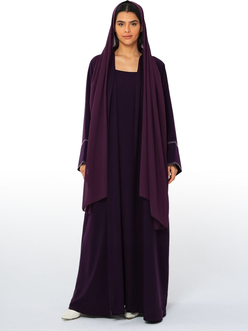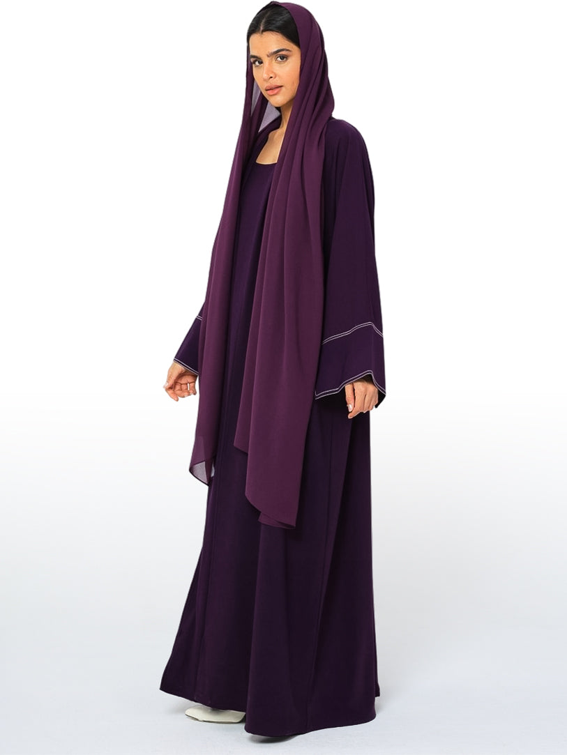 Subtle detailing runs through the stitched cuffs, adding quiet interest to this crepe mix abaya. A wardrobe anchor with shape and stillness. Pair it with earthy accessories or wear it as is — intentional, uncomplicated.