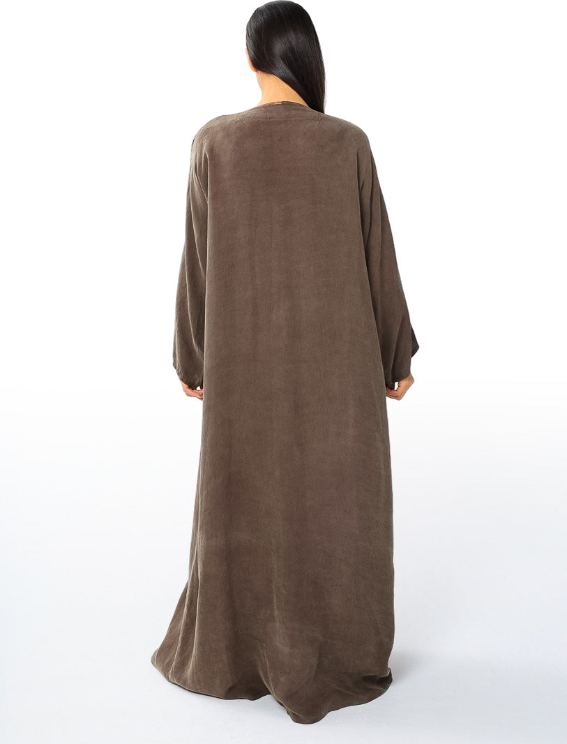 Finished in a velvet-like, lightweight fabric blend, this piece offers ease in motion and softness in texture. Perfect for transitional seasons and late coffee hours. Made for those who like tone-on-tone layering.